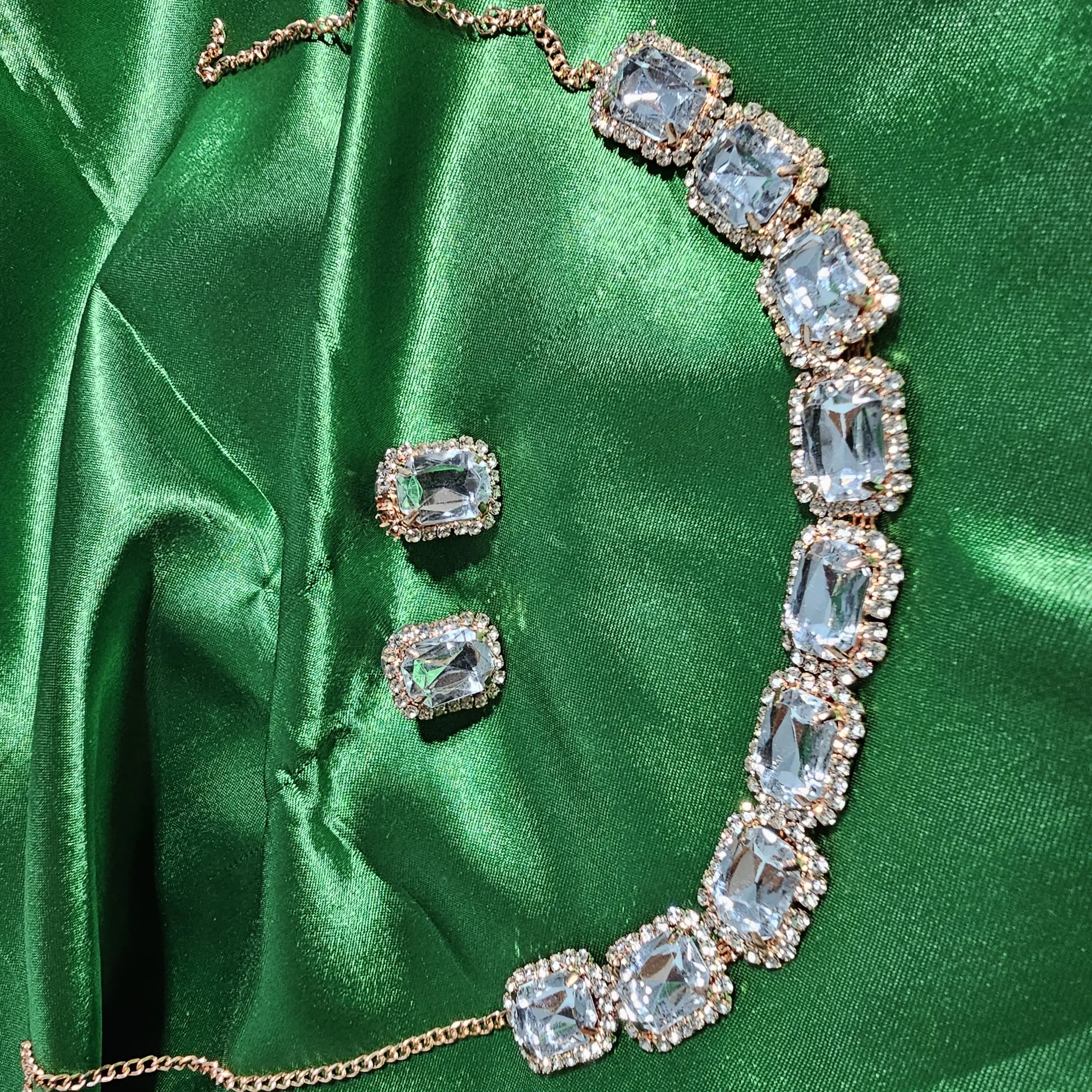 Enhance your style with the Crystal Elegance Stone Necklace Set, crafted with beautifully cut clear stones surrounded by shimmering crystal accents. The minimal yet luxurious design makes this necklace set perfect for women who love subtle elegance with a premium finish.