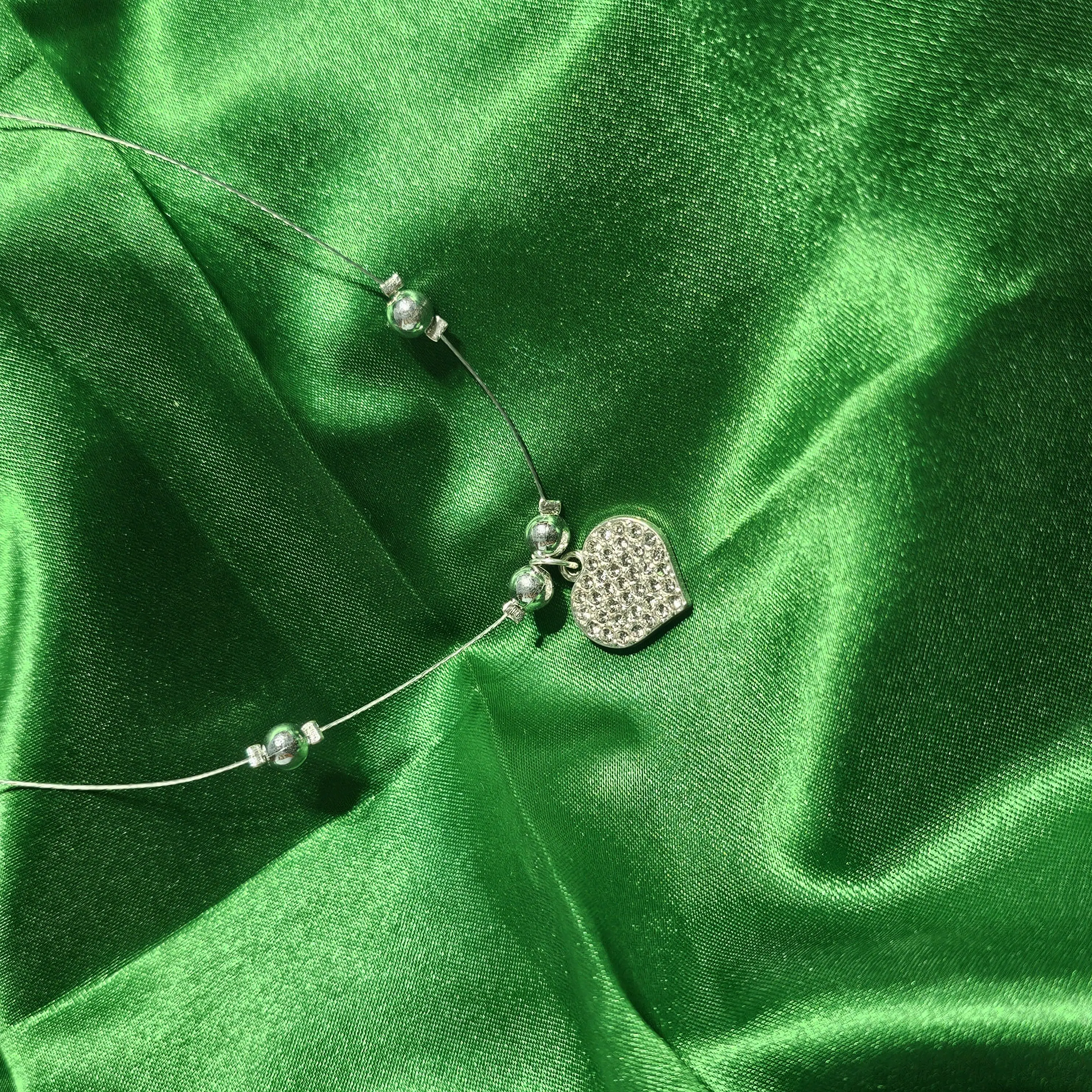 Express love and elegance with this beautiful Crystal Heart Invisible Chain Pendant. Designed in a timeless heart shape and studded with shimmering crystal stones, this pendant creates a stunning floating effect when worn on the invisible chain.
