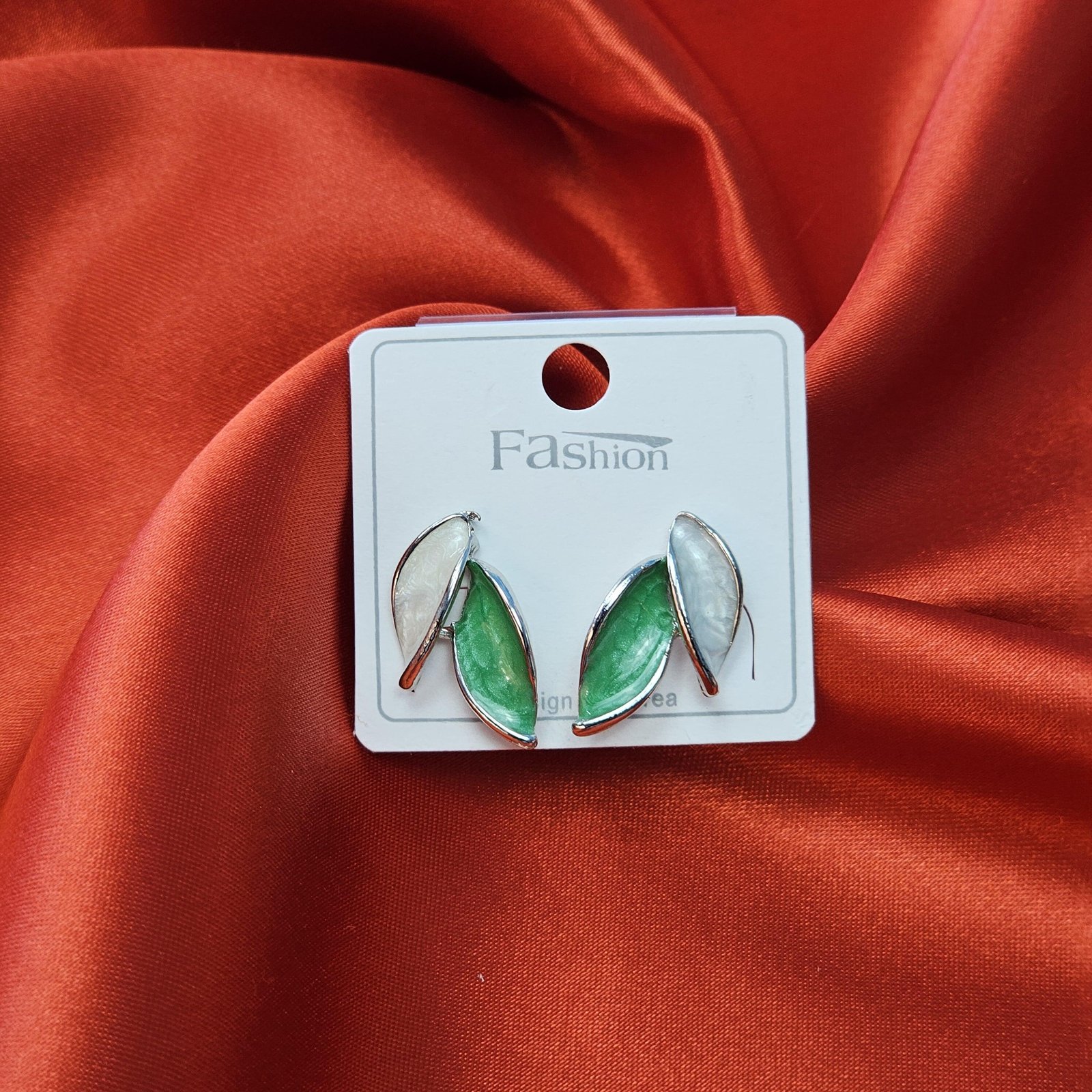 Designed with two-toned leaf motifs in soft pearl white and jade green, outlined with a sleek silver finish — these earrings bring a refreshing, nature-inspired charm to your look. Lightweight, trendy, and versatile, they’re the perfect match for both ethnic and modern outfits.