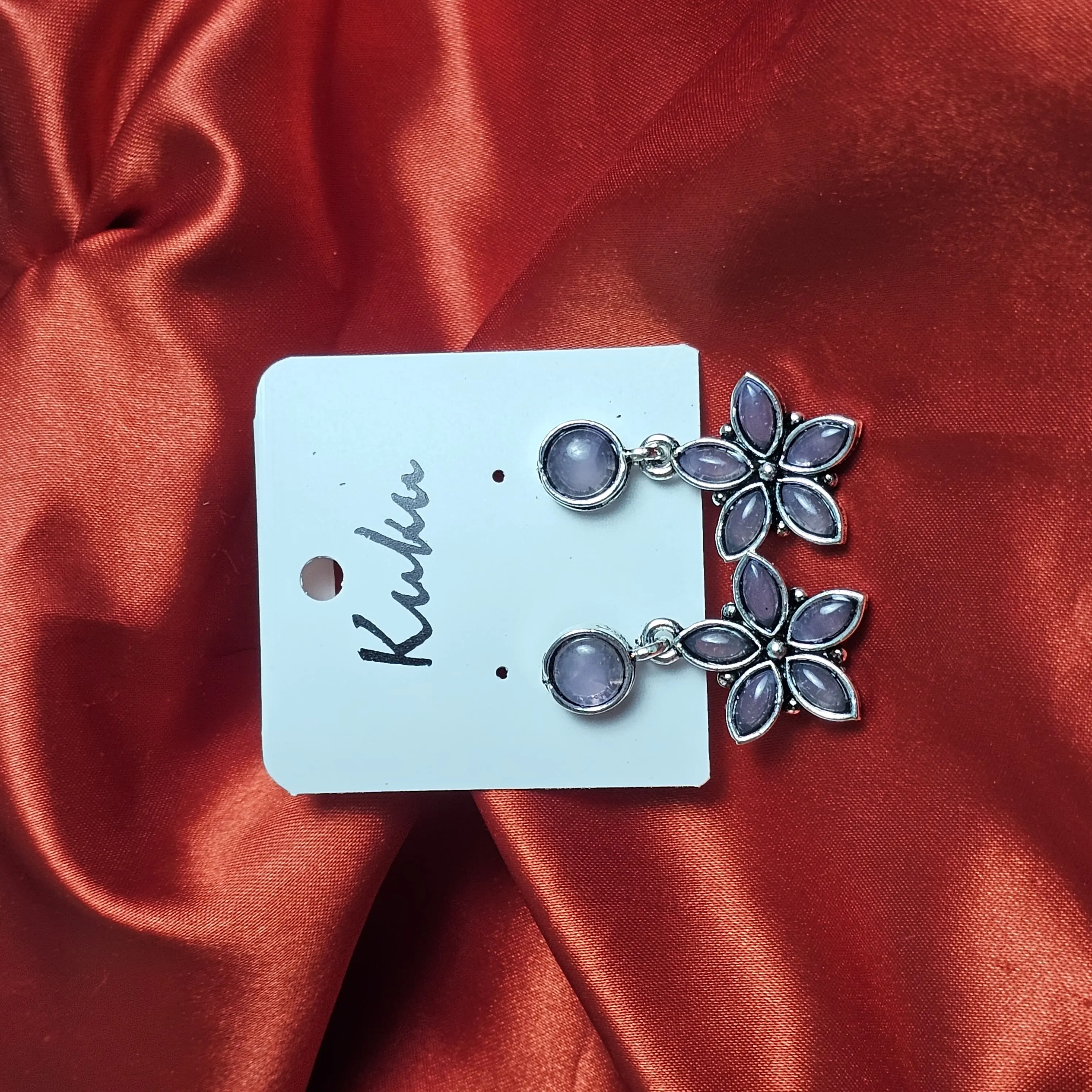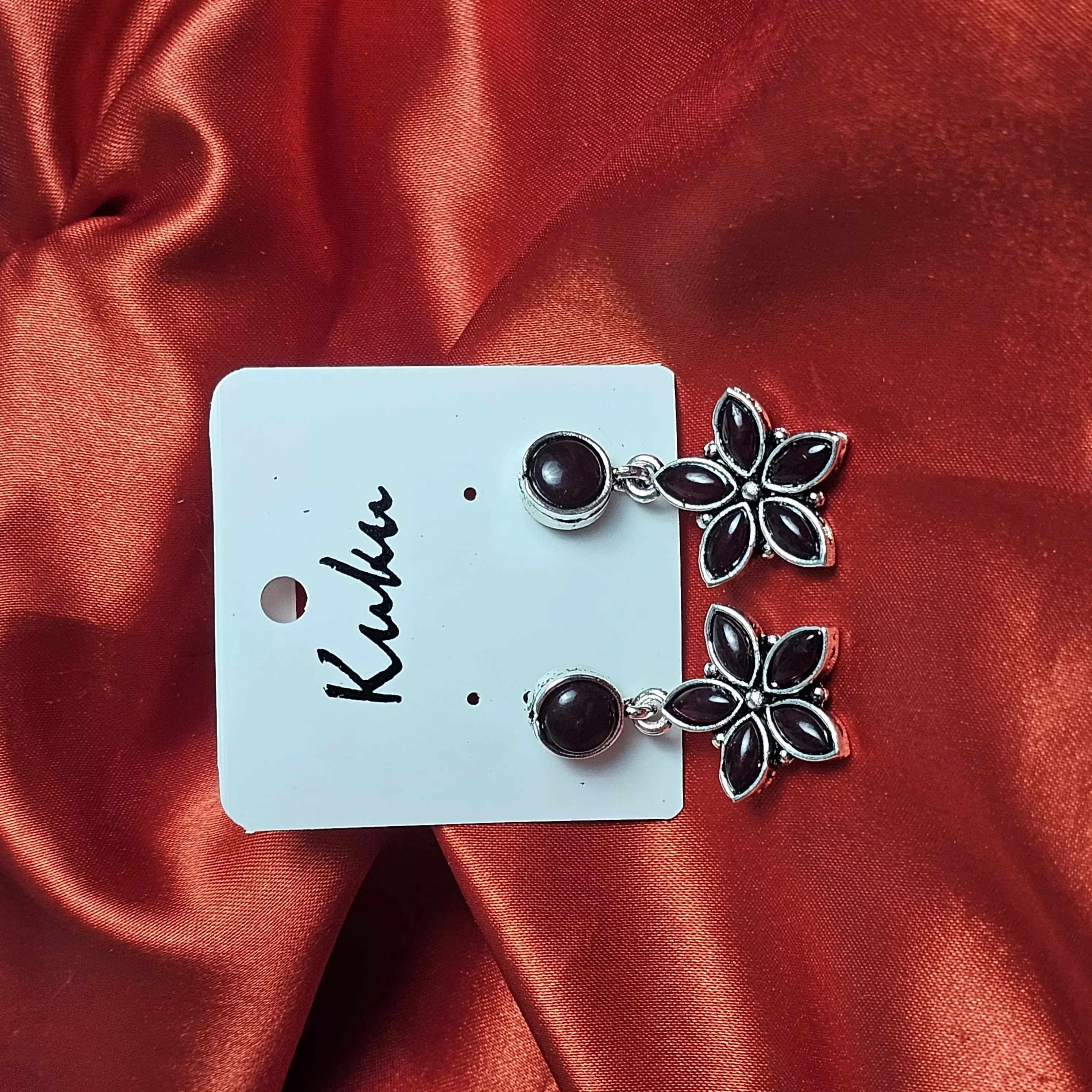 Ruby Bloom Oxidised Floral Drop Earrings subtle elegance-um traditional charm-um balance pannura design.