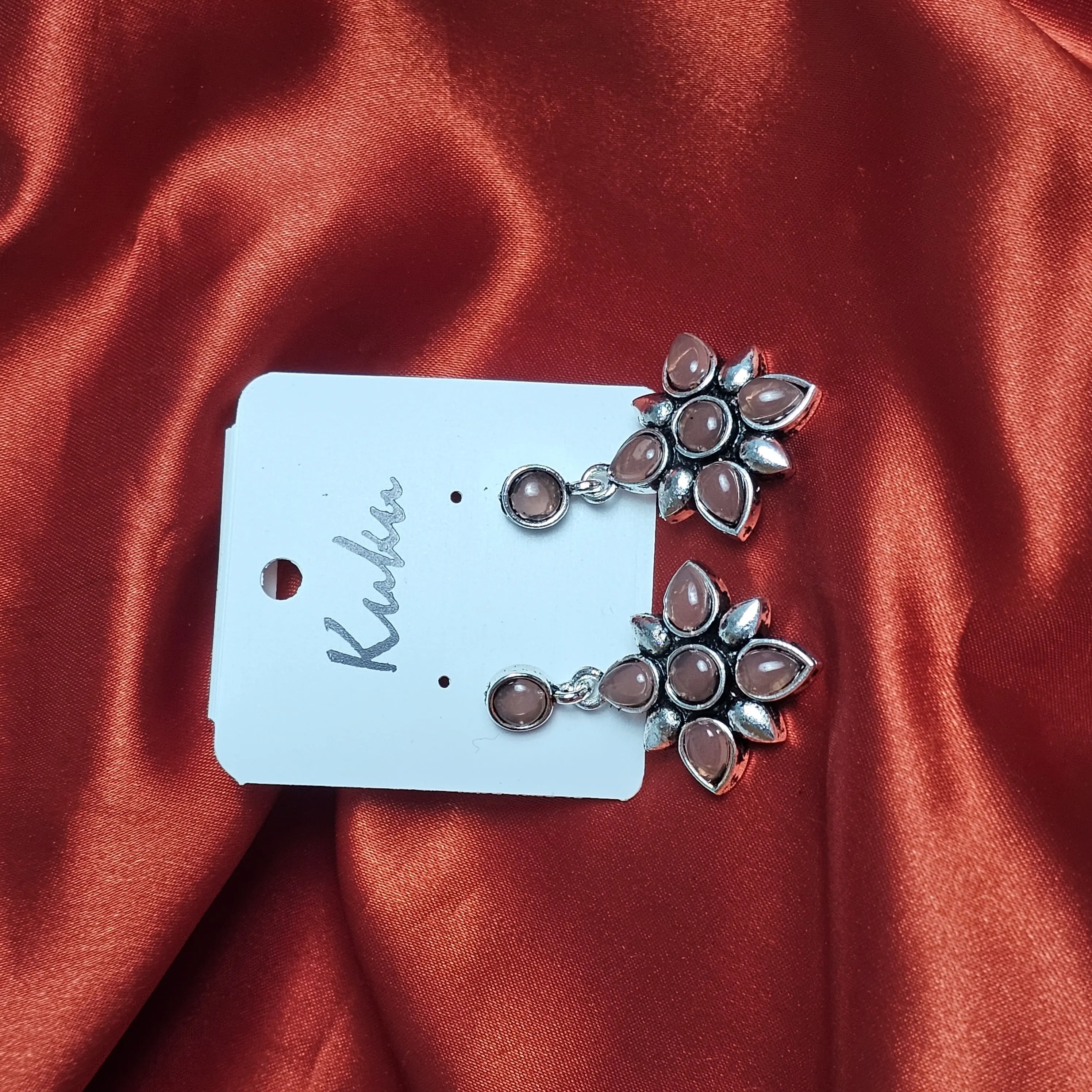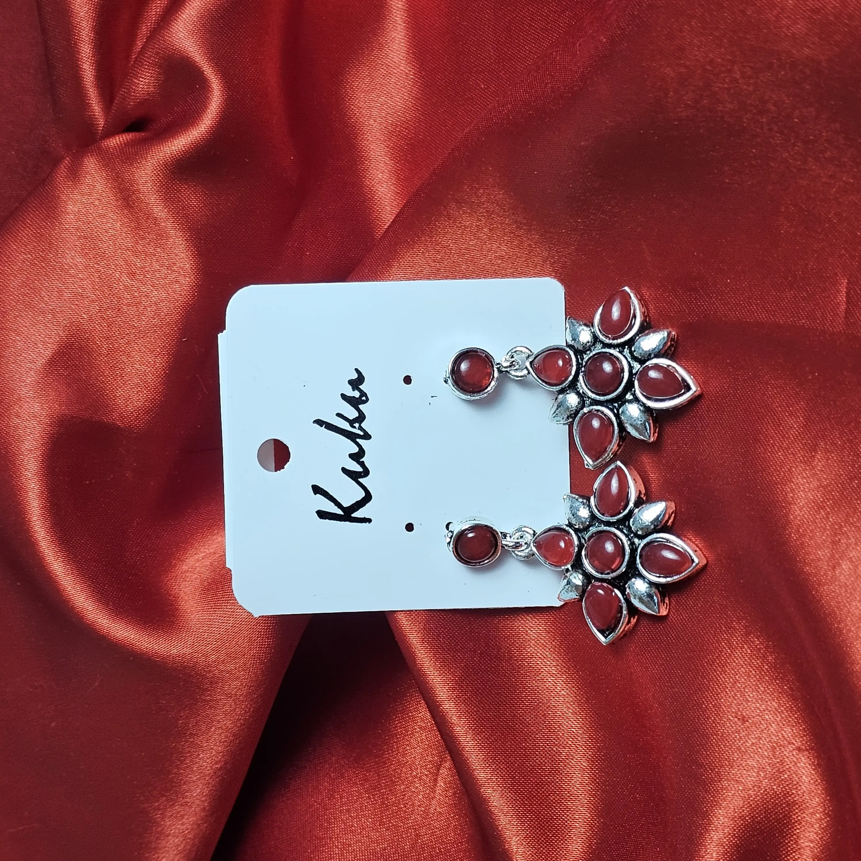 Ruby Petal Oxidised Cluster Drop Earrings