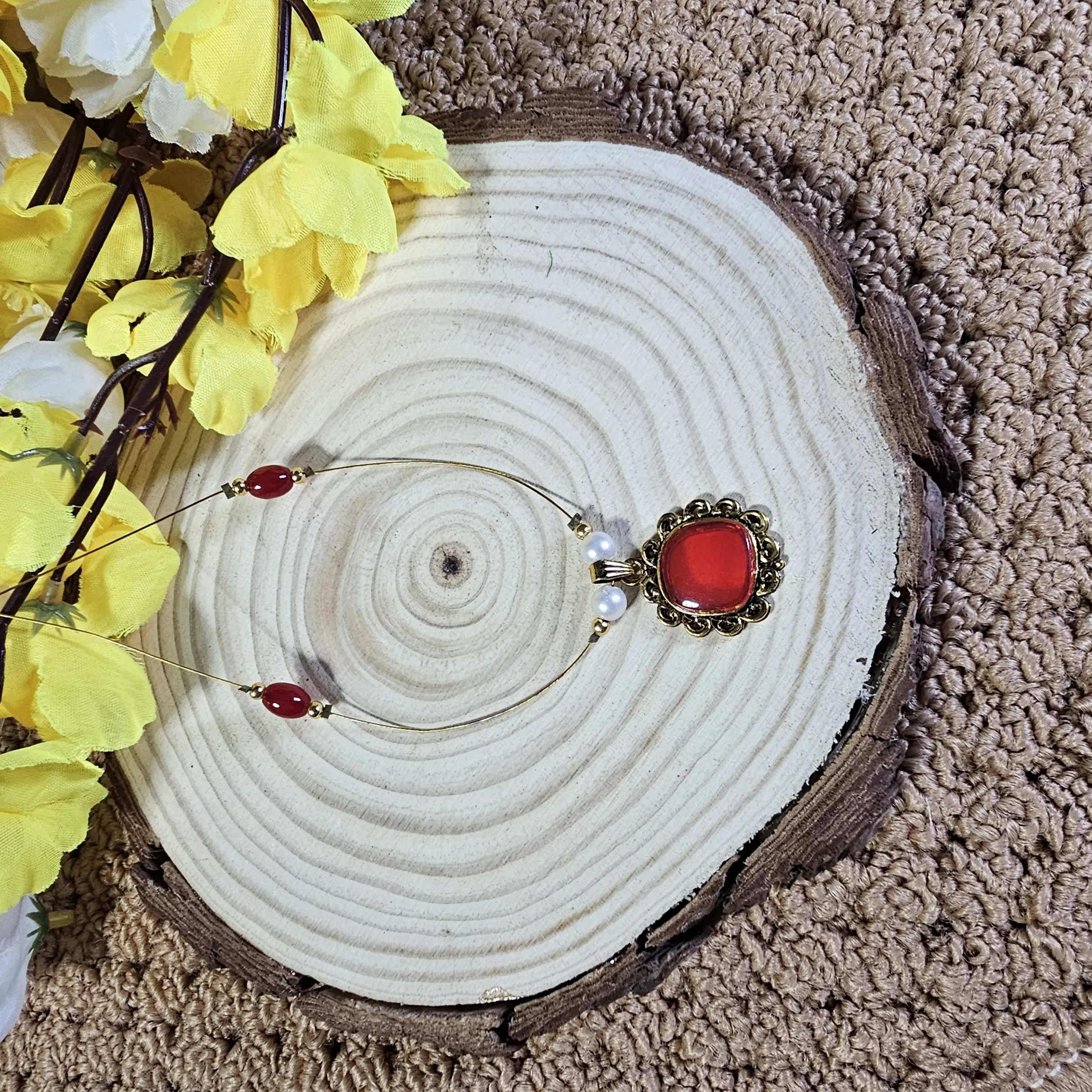 ✨ Bead Details: Pearl & Red Beads