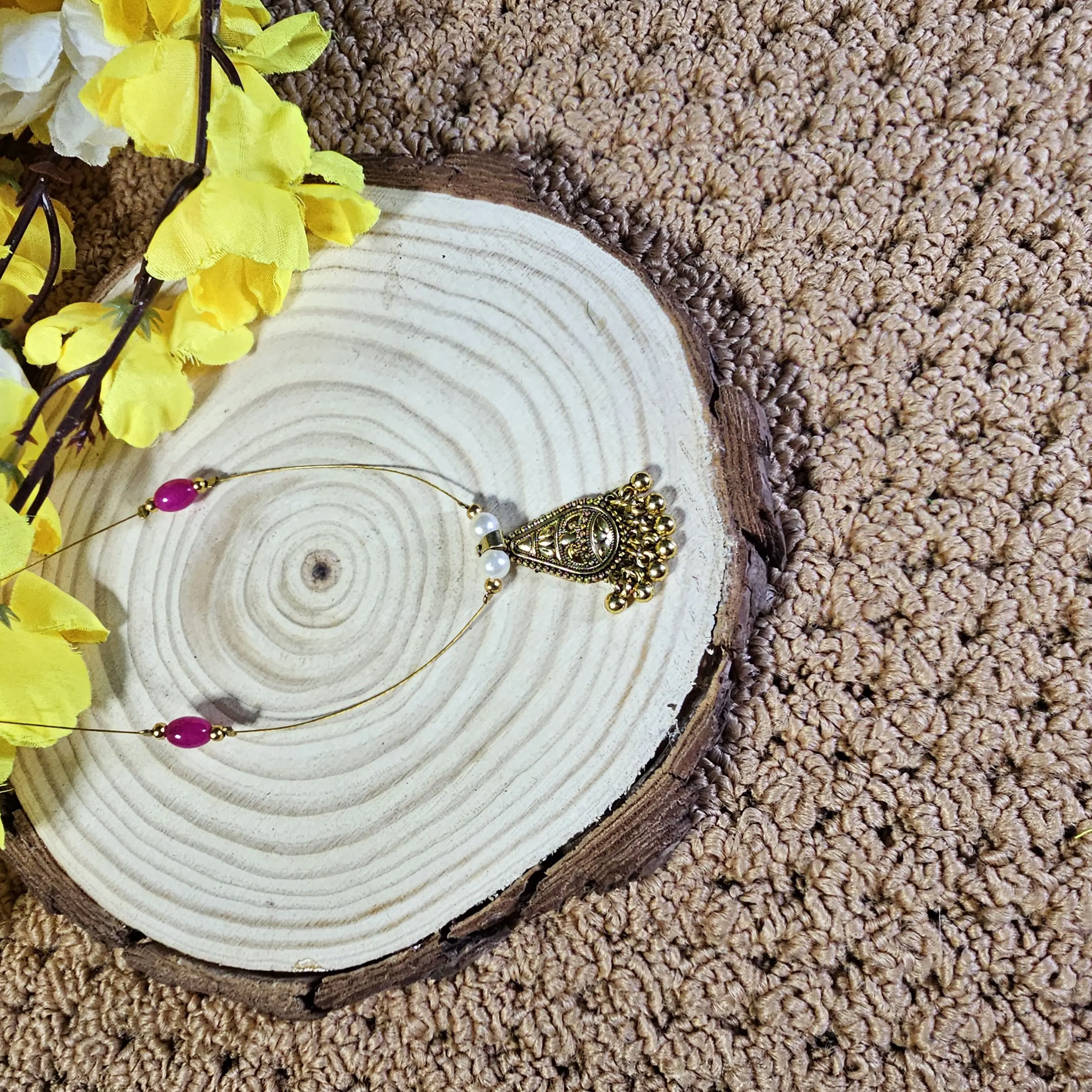 Bring subtle tradition into your everyday style with the Antique Drop Invisible Chain Pendant. This elegant piece features a beautifully carved drop-shaped pendant in an antique gold finish, highlighted with delicate pearl accents and soft pink beads on a lightweight invisible chain.