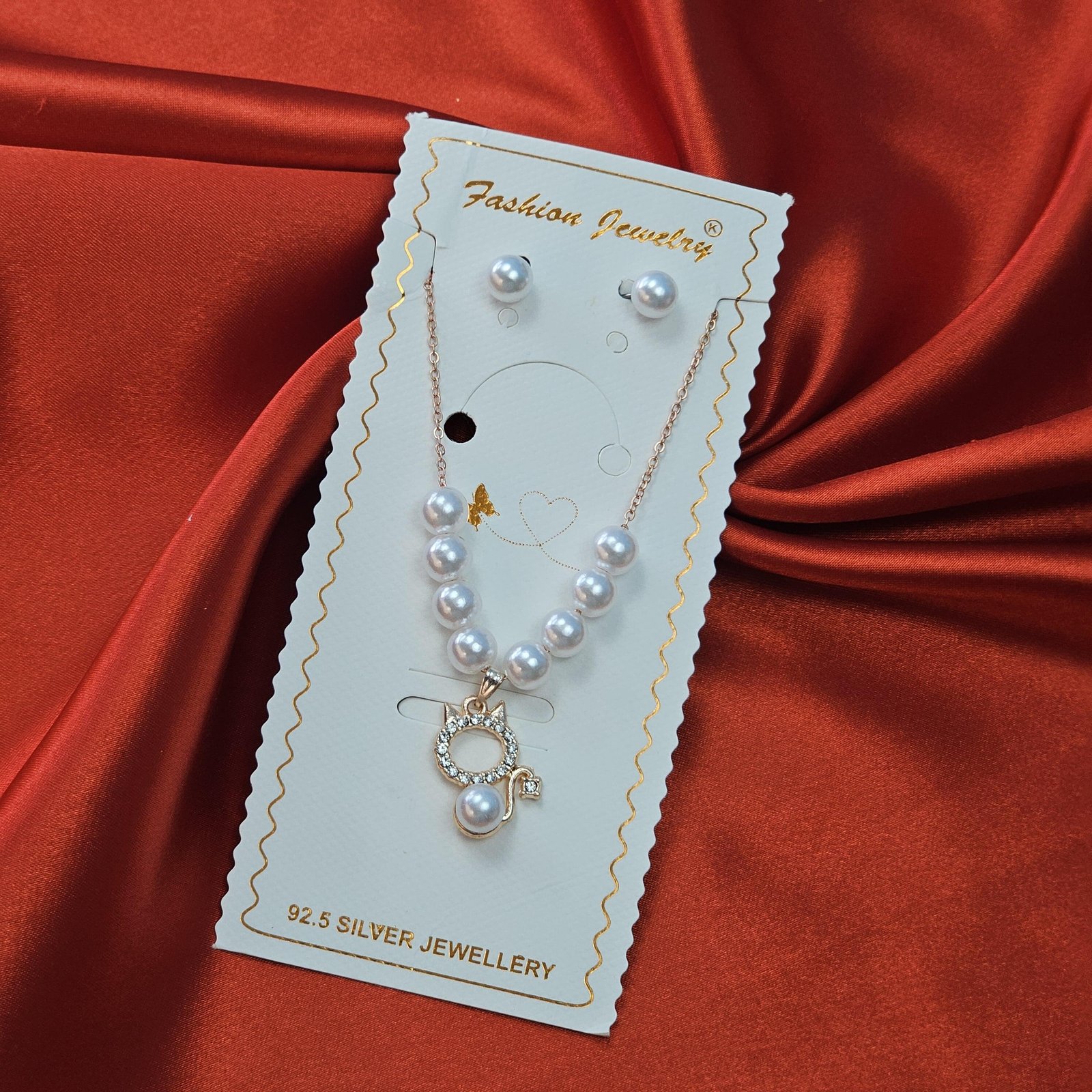 Add a touch of grace and cuteness to your style with this Cat Pearl Pendant Necklace Set. Crafted with lustrous pearls and a sparkling cat motif pendant, this 92.5 silver jewellery piece blends elegance with a hint of fun.