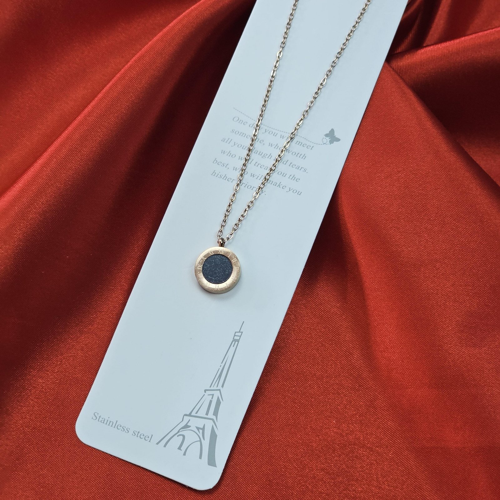 Elegant Round Black Stone Pendant Necklace – Stainless Steel