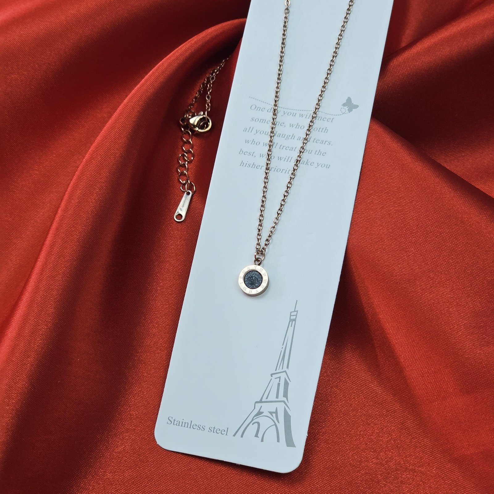 Inspired by timeless Parisian elegance, this Paris Charm Black Stone Pendant Necklace adds a sophisticated touch to your everyday style. Made with high-quality stainless steel, it features a round black stone pendant surrounded by a sleek rose gold circle design. The necklace is lightweight, durable, and resistant to tarnish — making it perfect for both daily wear and special occasions.