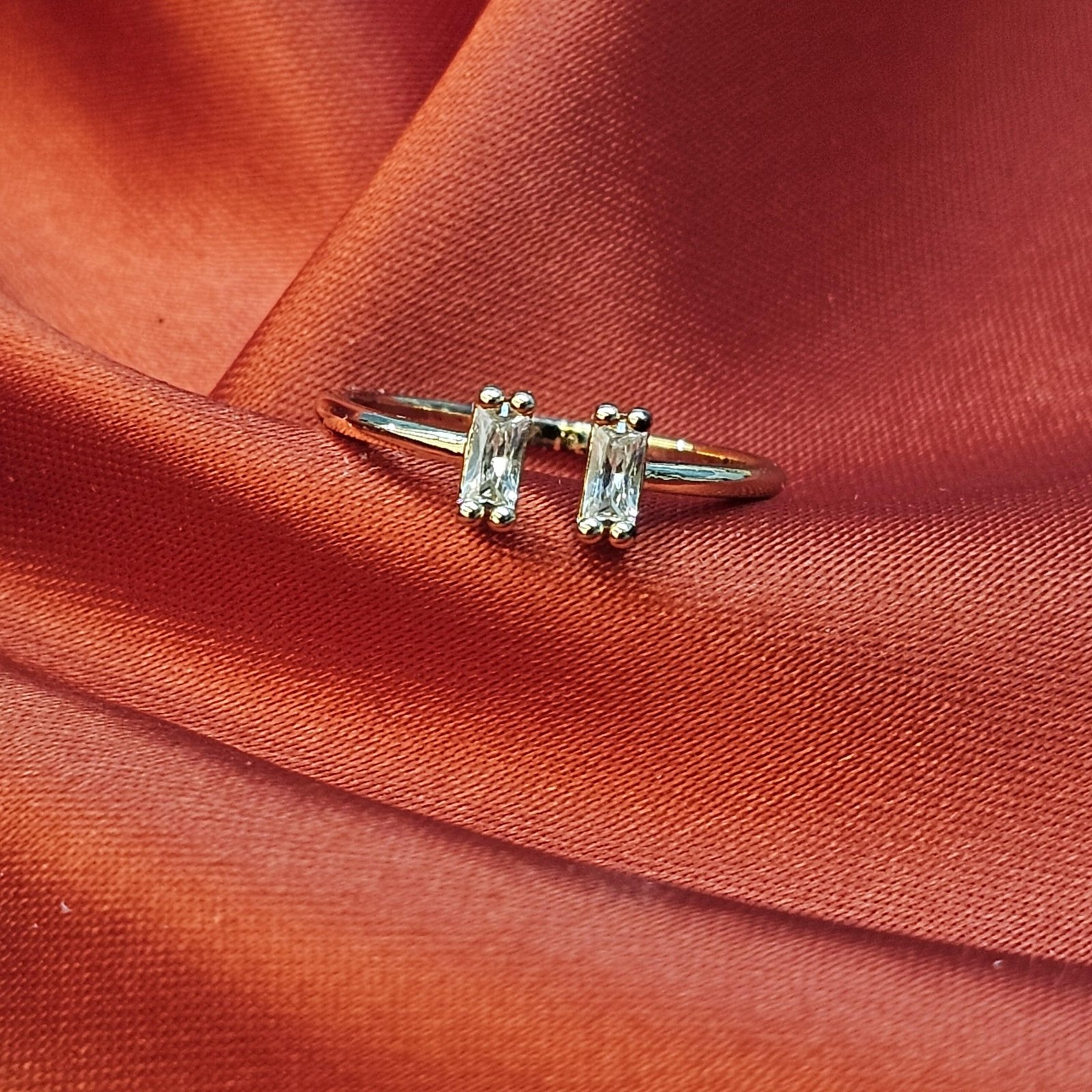The Twin Baguette Spark Adjustable Ring by Noolxz Fashion Studio redefines modern elegance.